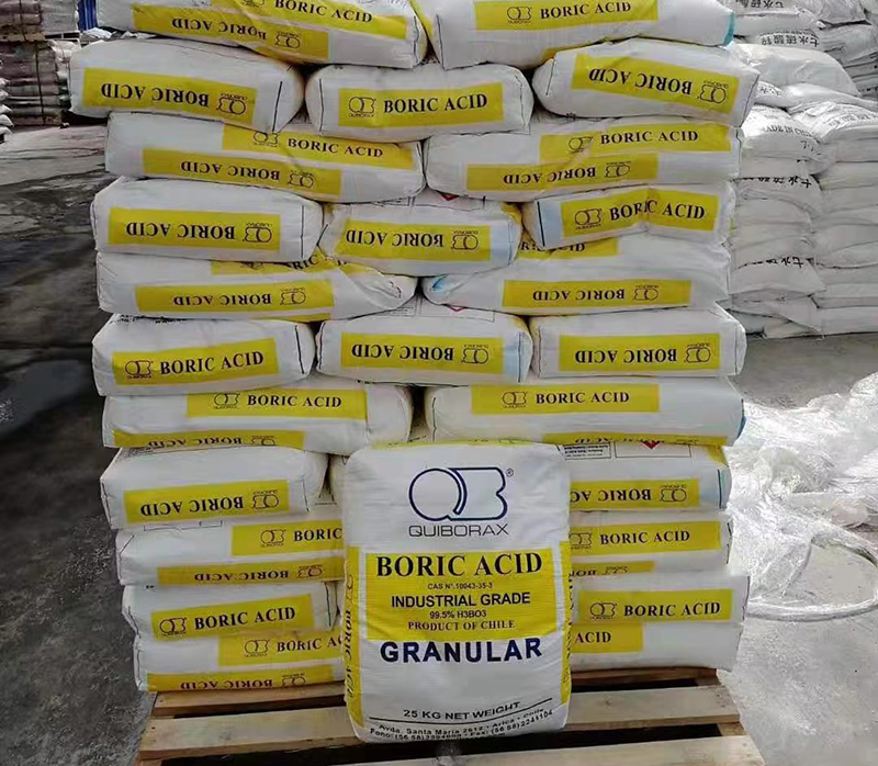 硼酸實際上是氧化硼的水合物(B2O33H2O),為白色粉末狀結晶或三斜軸麵鱗片狀光澤結晶,與皮膚接觸有滑膩手感,無臭味。溶於水、酒精、甘油、醚類及香精油中,無氣味,味微酸苦後帶甜。露置在空氣中無變化,能隨水蒸氣揮發。加熱至100-105℃時失去一分子水而形成偏硼酸;於104-160℃時長時間加熱轉變為焦硼酸,更高溫度則形成無水物。硼酸在0.1mol/L水溶液中PH為5.1.1g能溶於18ml冷水、4ml沸水、18ml冷乙醇、6ml沸乙醇和4ml甘油。在水中溶解度能隨鹽酸、檸檬酸和酒石酸的加入而增加。相對密度:1.4347,熔點184℃(分解),沸點300℃。